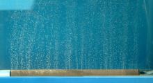 上記の写真の風量は、エアストーンを設置する位置での風量となります。仮にポンプのスペック上0.9リットル/分となっていても水深が深くなると、実際に泡の出る量は少なくなることがありますのでご注意下さい。 |
