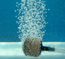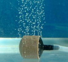 セラミックに空いている孔が小さいためにしっかりと水になじませてからエアを送らないと空気が残った部分から大き目の泡が出てしまうという弱点はありますが、泡の細かさは標準品よりも細かい泡となります。