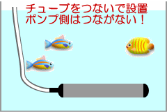 1)チューブをつないで水槽内に沈めます。 |