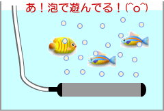 また、いぶきエアストーンでは泡で魚が遊ぶところをみたというお客様からのコメントも沢山いただいております。ですので、泡で遊ぶ魚をご覧になることができるのではと思います。(^-^) |