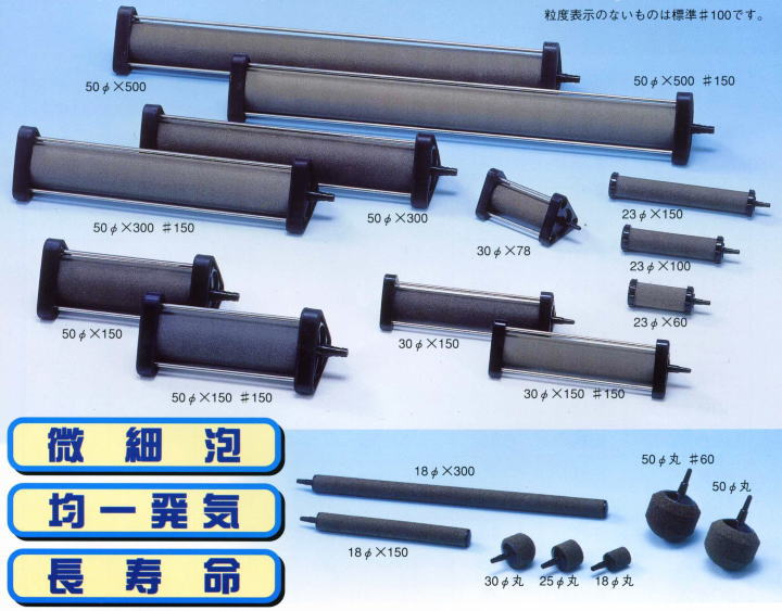 また50φ丸については逆に標準品よりも泡が粗い#60という設定があり、特に目詰まりが心配な環境での使用にお勧めです。