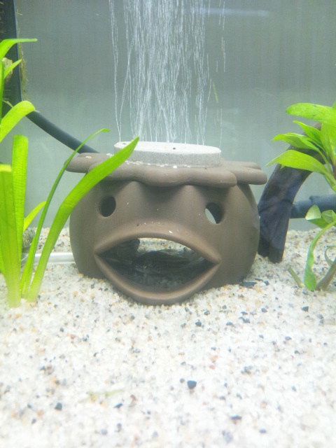 新しく立ち上げたコリドラス水槽にカッパくんをプレゼントしました、さっそく中に隠れたコリドラスににやけ顔(笑)