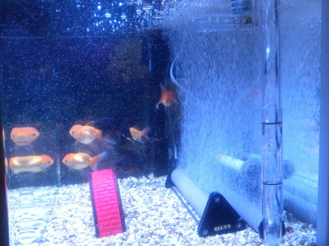水流を好まないオランダ、黒出目金たちも微細な気泡で水流も緩やかで悠々と泳いでいます
