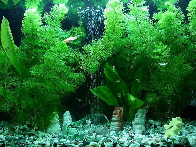 浄水器だけだと流れを強くしないと水膜が出来てしまい金魚も水流に流されてたのですがエアストーンを入れてから水流を弱くしても水膜が取れ金魚もゆったり泳いでます。