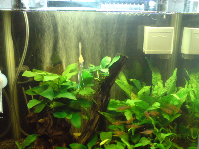 エアカーテンが水草活着流木にひっかかっているのが何とも…(汗)