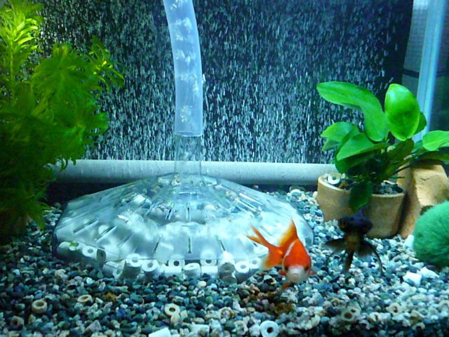 始めはびくびくしていましたが 直ぐに慣れて ストーンから立ち上るエアシャワーで遊びだしました!