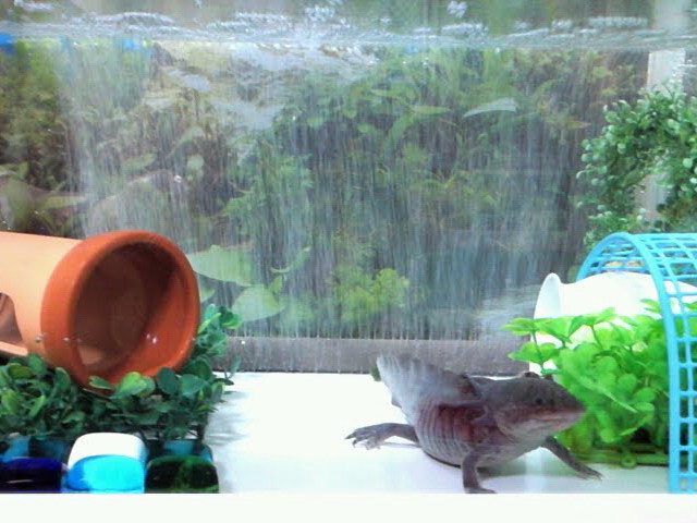 ウーパールーパーのウッパも心地よいのかあくび等して余裕の笑顔です。