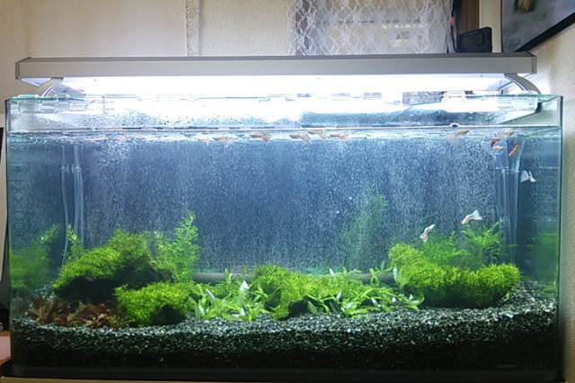リビングに国産グッピーのメイン水槽 (90cm×45cm×45cm)を立ち上げるために23φ×450#100 を2本購入させて頂きました。