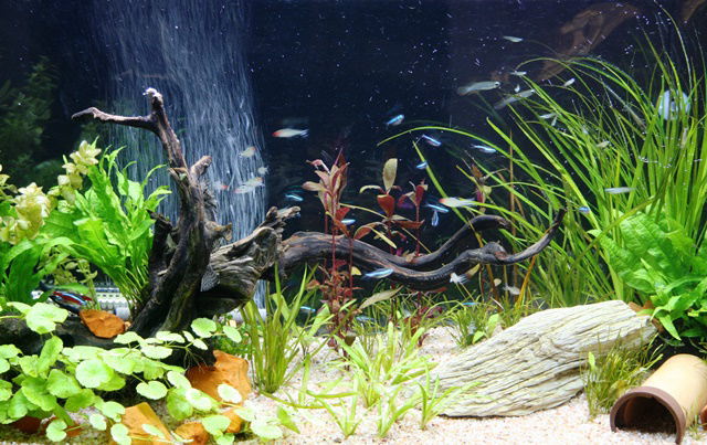 細かなエアーで本当に魚たちがよろこんで遊んでいるようです