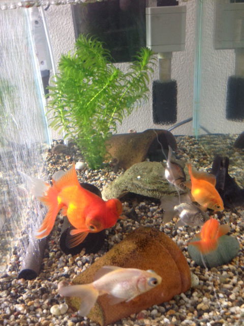出目金、土佐錦、ドジョウのいる45p水槽にいぶきエアーストーン18φ×150#100を使用。