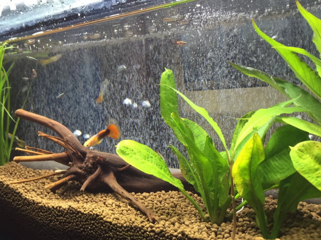 するとグッピー達がまるで待ってましたかの様にエアレーションで遊んでくれました!
