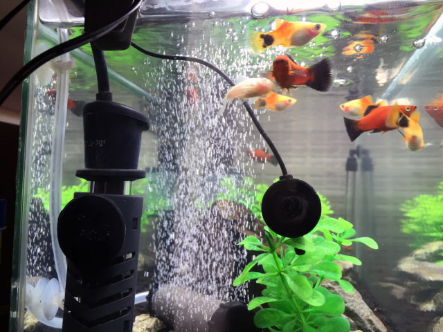 とても元気に泳ぐようになりました。細かい泡で遊ぶプラティを見ていると、
