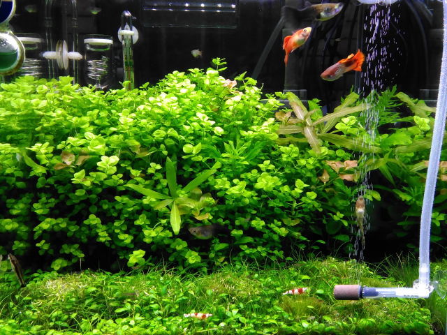 確かにシュリンプやグッピーがバブルで遊んでおります。